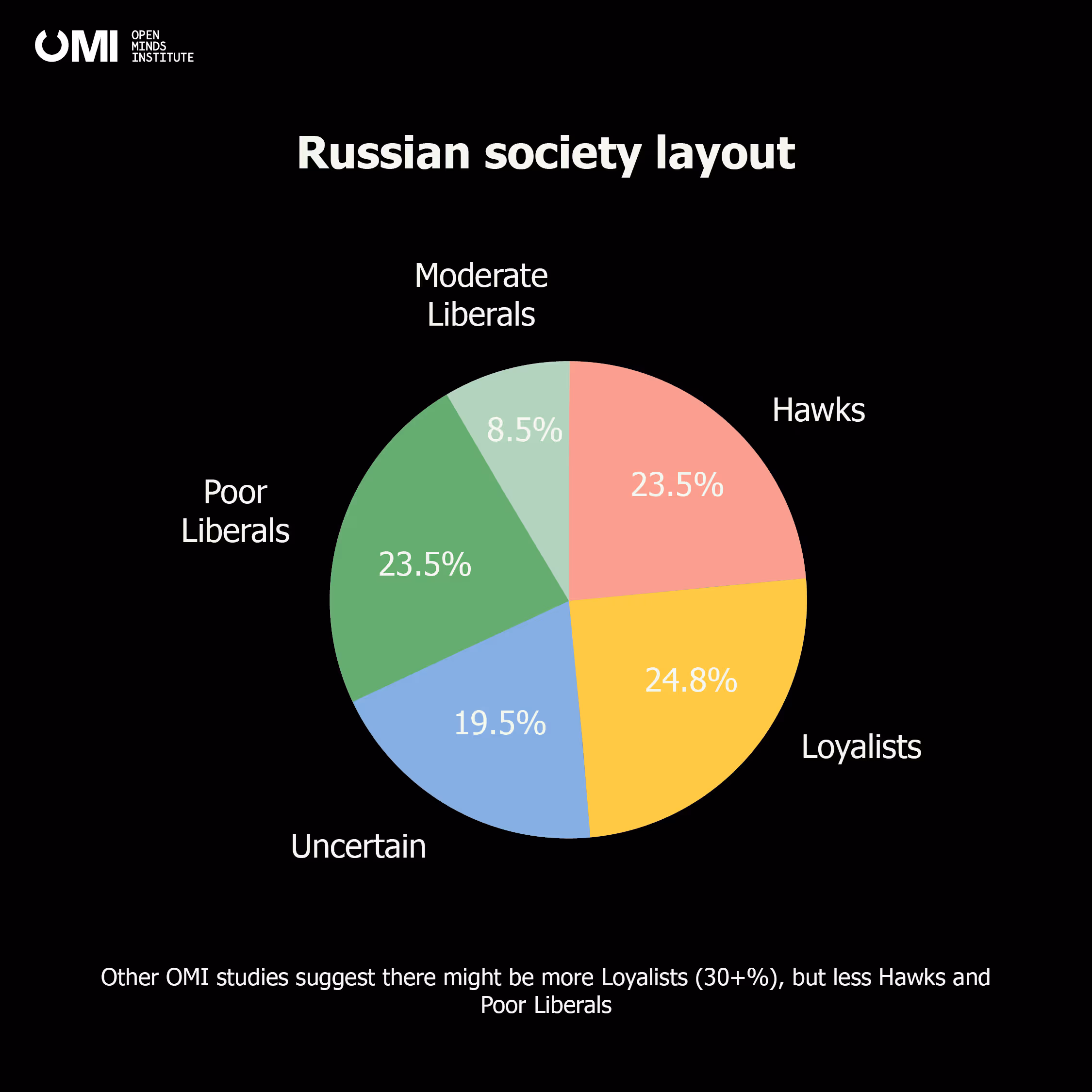 In our 2022 Year Report the OMI team analysed the key trends in Russian society and provided the main factors determining support for the war, with authoritarian obedience being the key one. This time OMI has delved deeper into the online behavior of Russians so as divide Russian society in the relevant groups, each with its own distinct beliefs.