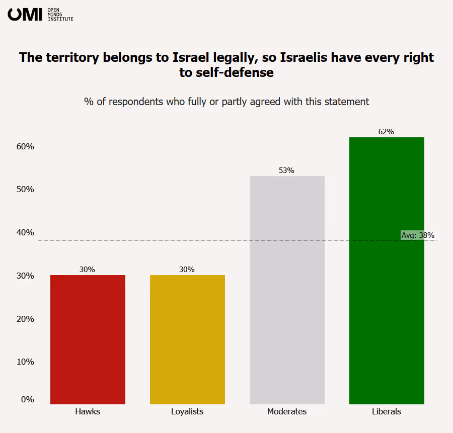 Notably, among the Liberal segment, there is a greater tendency to characterize Hamas militants as terrorists, whereas Moderates and Loyalists exhibit less stringent characterizations of them and Palestinians fighting against Israel. Among pro-government clusters, a significantly larger portion spreads the opinion that Palestinians have the right to resist the occupation of their territories.