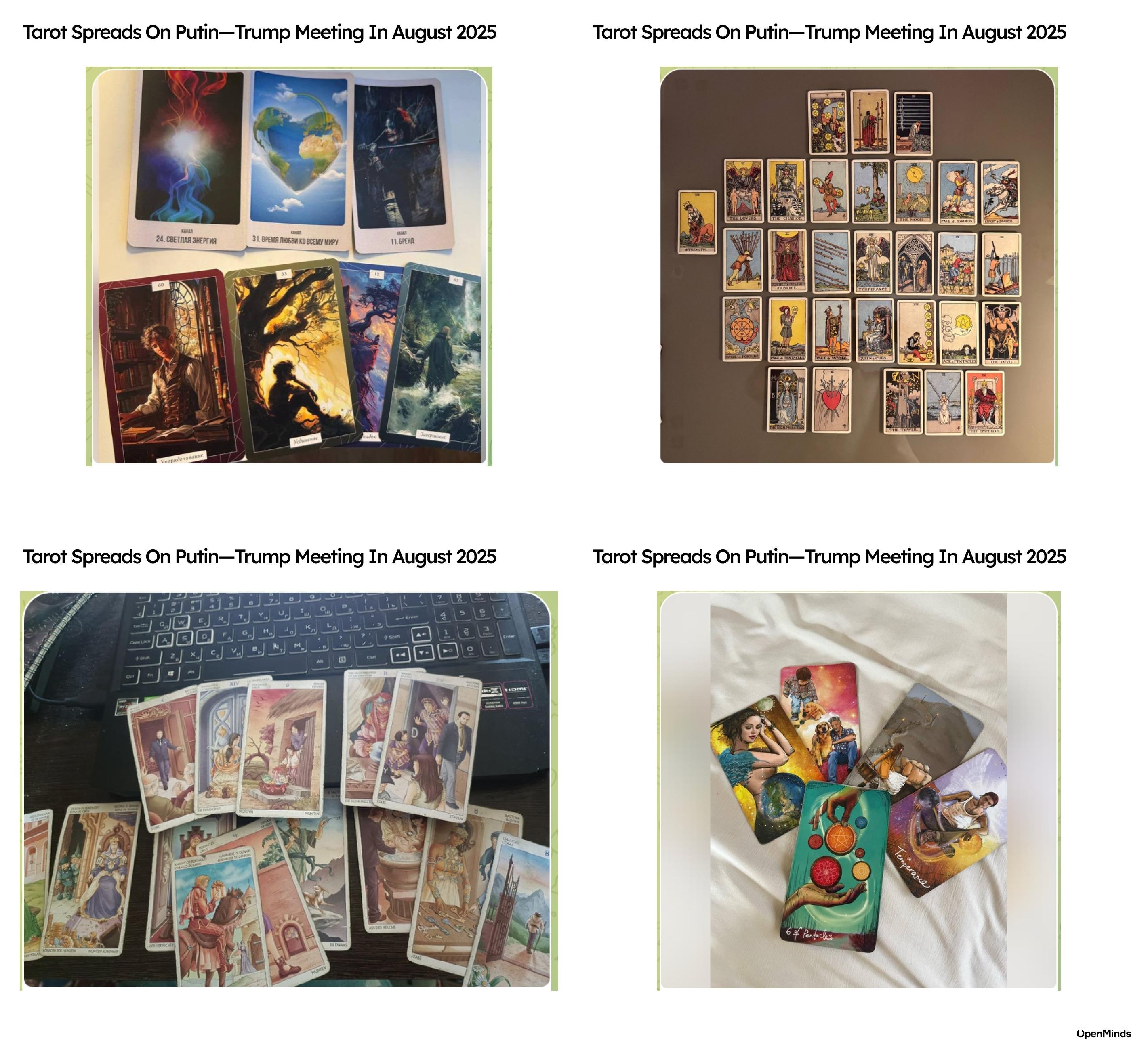 Yet these forecasts almost never strayed from the Kremlin's official line. One channel, @tarotnevrut, reminded its followers of earlier "visions" about "the return of something that someone considers historically theirs." Another, @crazyprophecies, operating under the guise of "prophecies" but more accurately described as conspiracy-laden, insisted the venue was chosen intentionally, claiming "the place is energetically OURS, even if it still belongs to America."