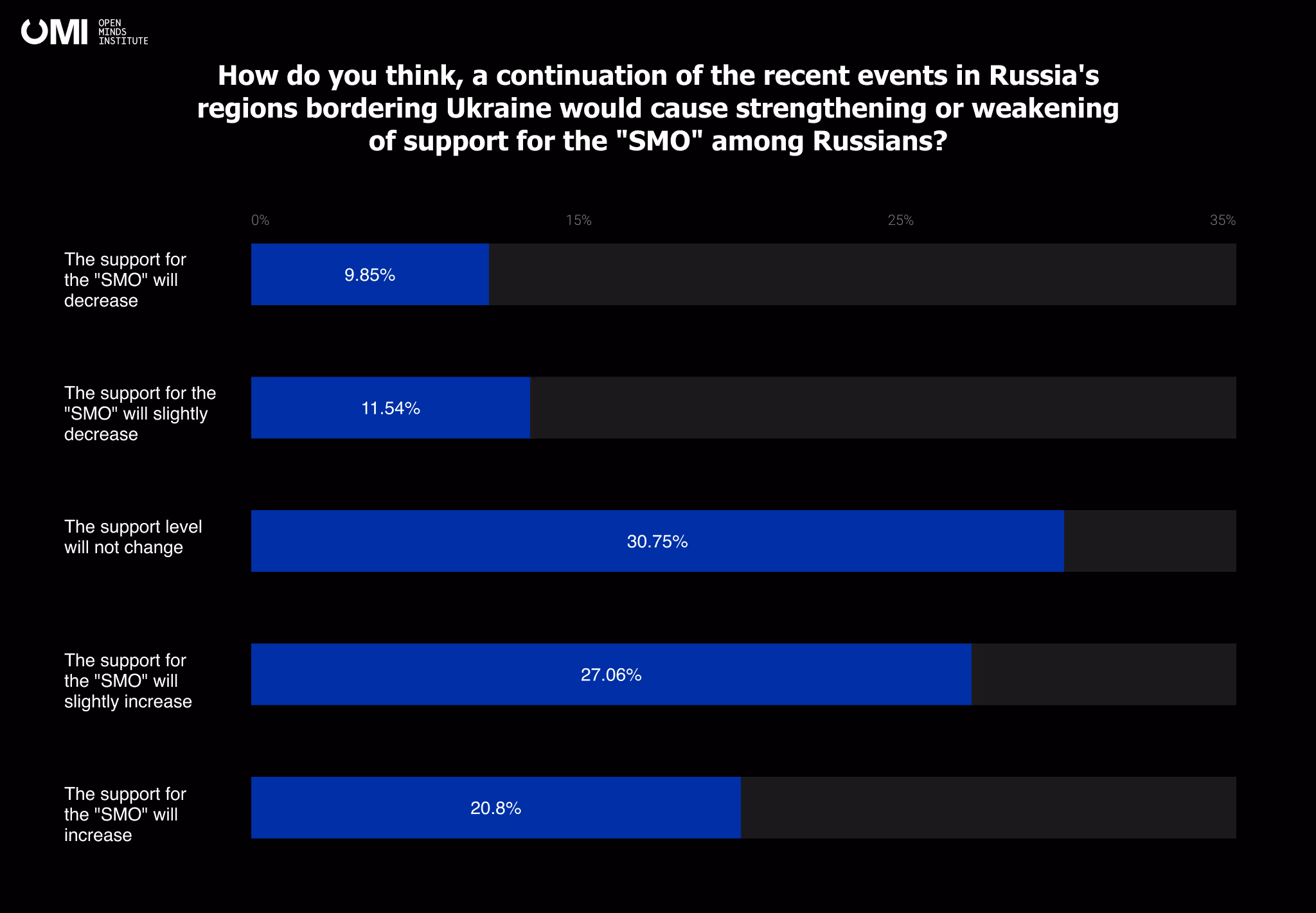 Nearly half of the respondents believe that the war’s popularity among Russians will rise if the crossborder raids persist.
